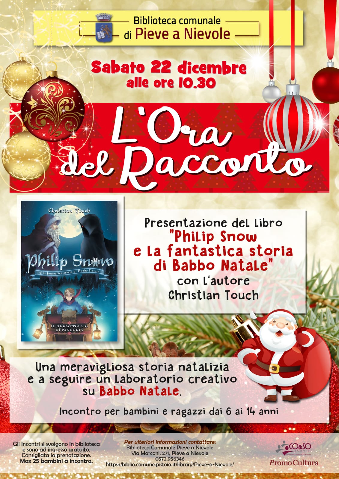 "Philip Snow e la fantastica storia di babbo Natale" con l'autore Christian Touch a l'Ora del racconto, sabato 22 dicembre, ore 10,00, Biblioteca Comunale.