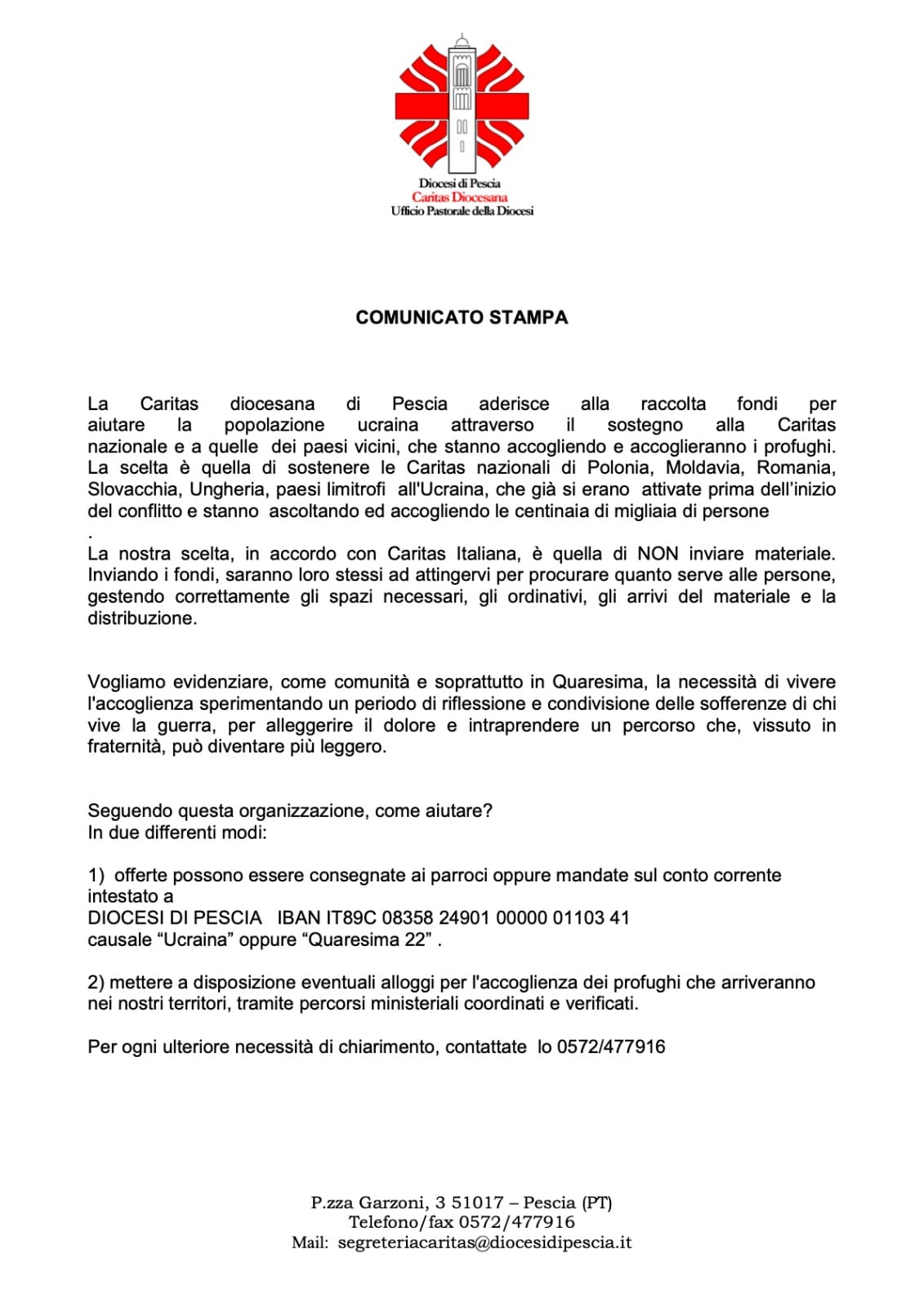 Un grazie anche a Don Alberto per l'immediata collaborazione prestata al fine di impostare al meglio, tutti insieme, le operazioni di aiuto verso l'Ucraina.