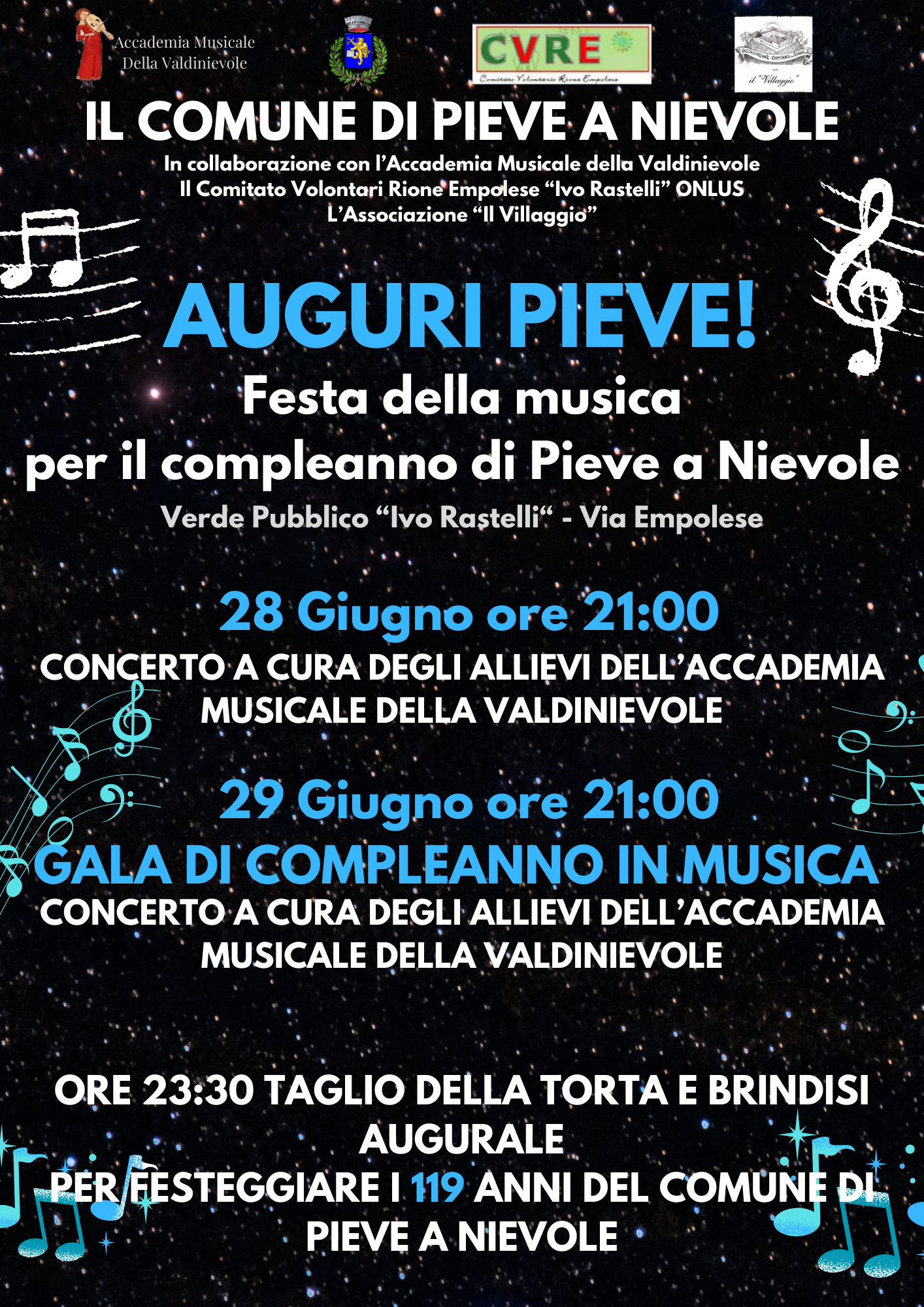 FESTA DELLA MUSICA PER IL COMPLEANNO DEL COMUNE DI PIEVE A NIEVOLE