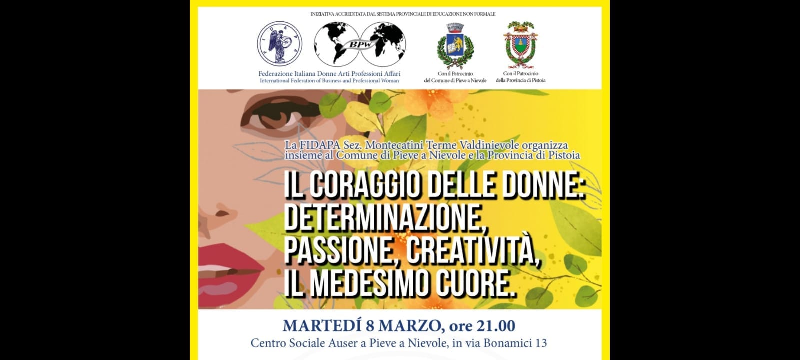 L'iniziativa organizzata dalla FIDAPA Montecatini Valdinievole in collaborazione con il Comune di Pieve a Nievole è accreditata dalla Provincia nel sistema di educazione provinciale degli adulti.