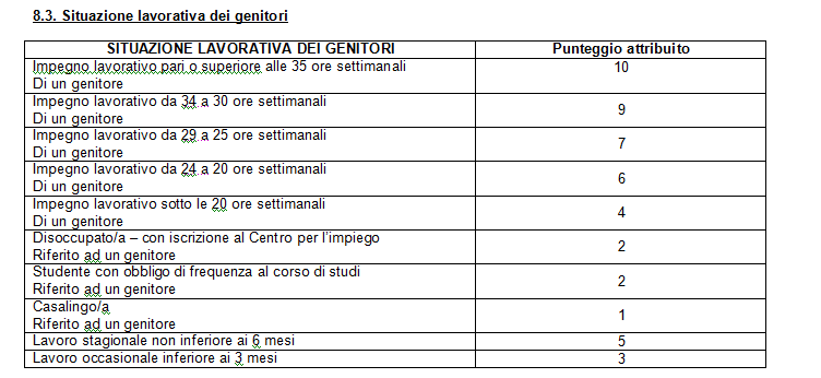 - nel caso di ulteriore parità: i bambini avranno la precedenza in base alla data di presentazione della domanda