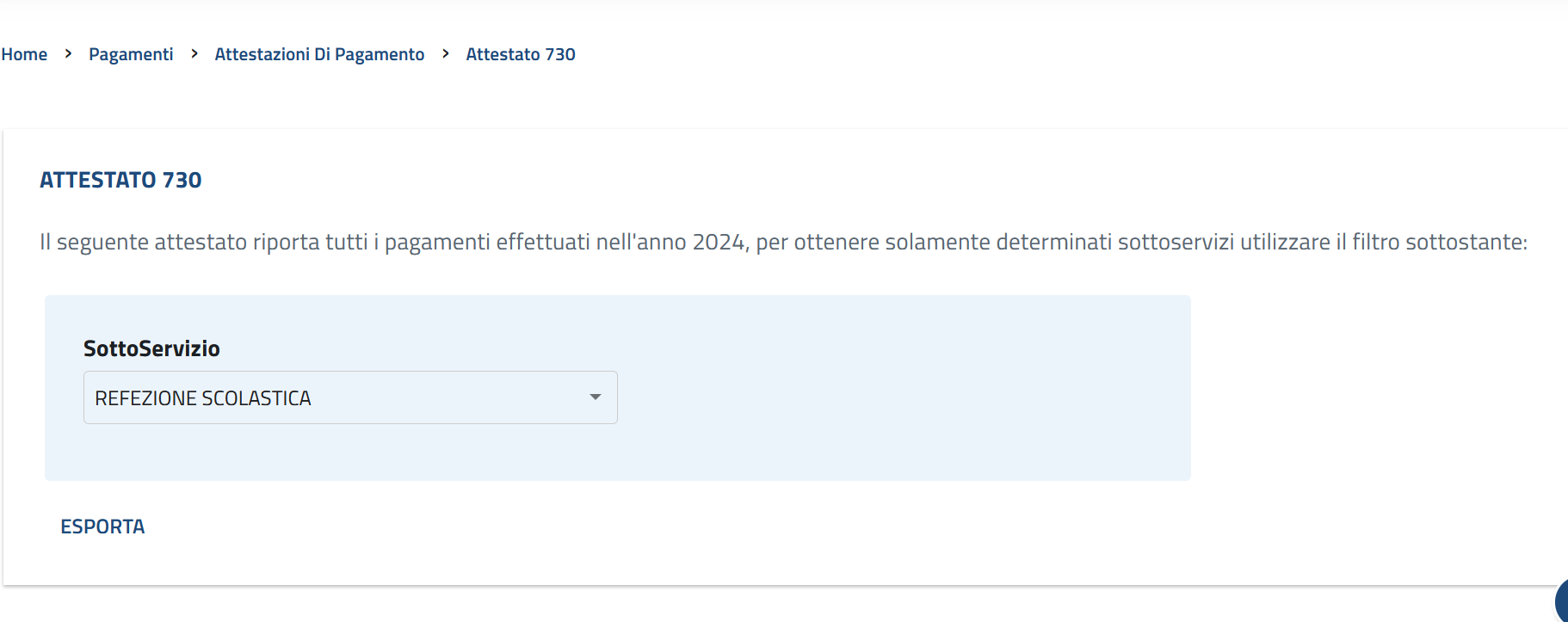 Informiamo i genitori interessati che è possibile richiedere autonomamente l'attestazione 730 degli avvenuti pagamenti attraverso il portale dedicato