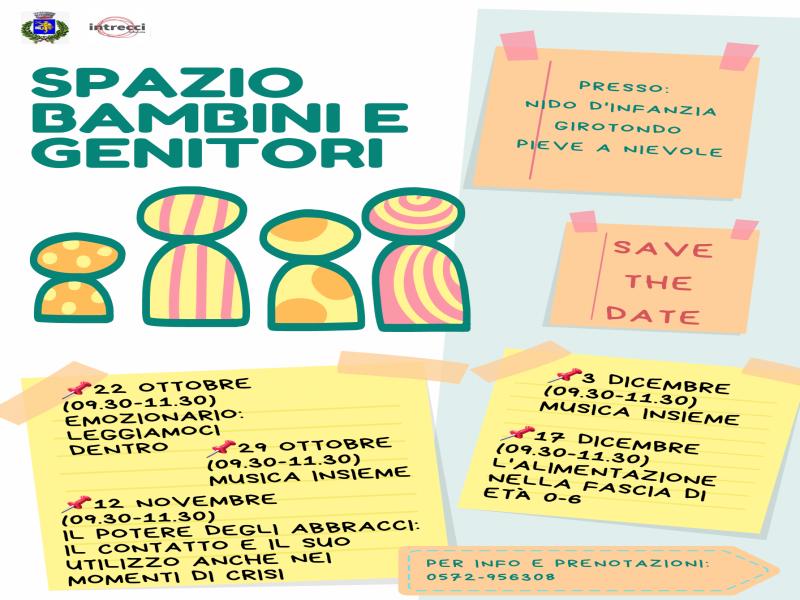 Gli incontri si svolgono il sabato mattina dalle ore 9,30 alle ore 11,30 presso l’asilo nido comunale di Via Umbria, la partecipazione è gratuita ma è richiesta la prenotazione al seguente numero: 0572/956308 – 0572/956346